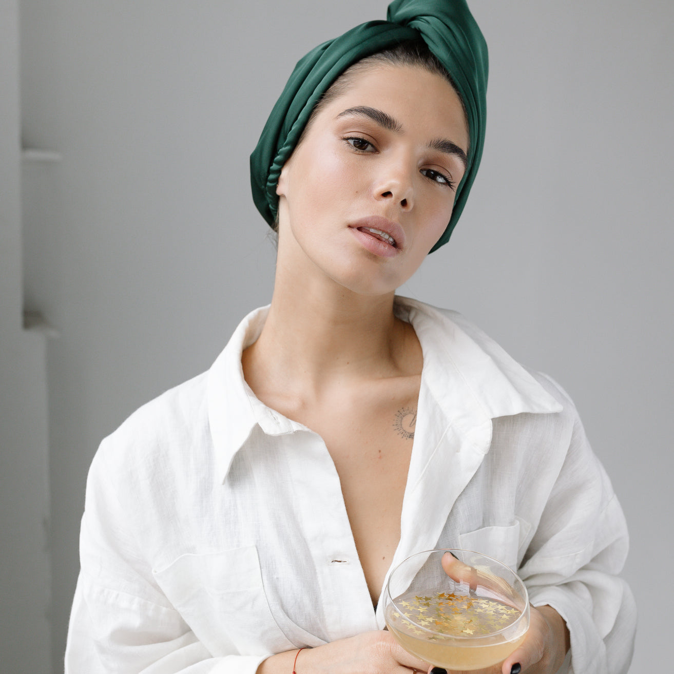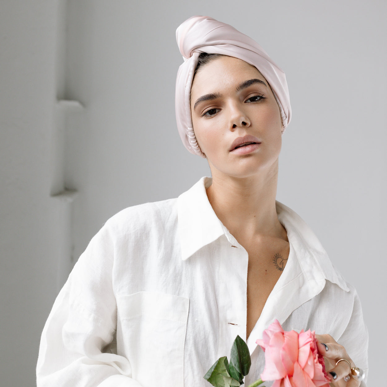 I reached out to Nadia for questions. She was more than kind to not only answer my questions but make sure that my hair goals were in line with the right product. She is so kind and thoughtful which is just the cherry on top of an exceptionally luxurious item. The silk is heavy weight and extremely soft. Every little detail from the heavy metal button to the inner silk pouch to hold your hair is a perfect everyday luxury item. I will never use a towel again. I’m obsessed!