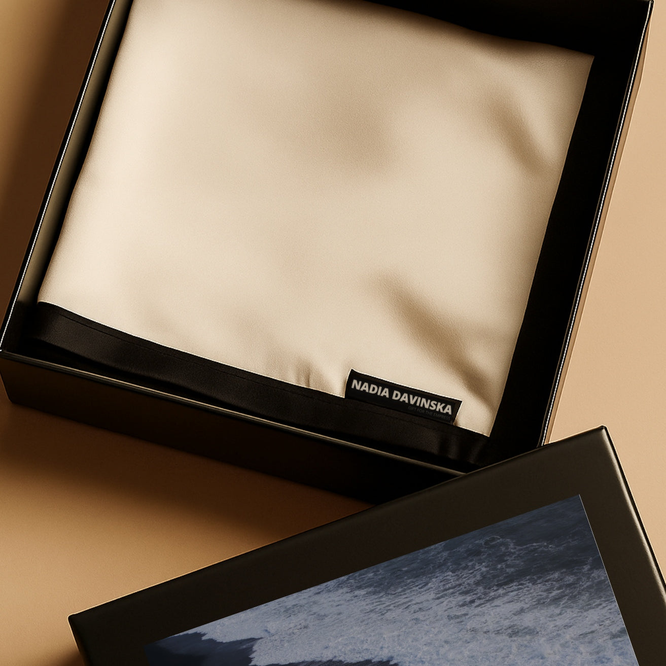 At Nadia Davinska, we believe that beauty begins with gentleness. Our premium silk care accessories, crafted from the world’s finest Mulberry silk, are designed to elevate your everyday rituals into moments of gentle self-care.